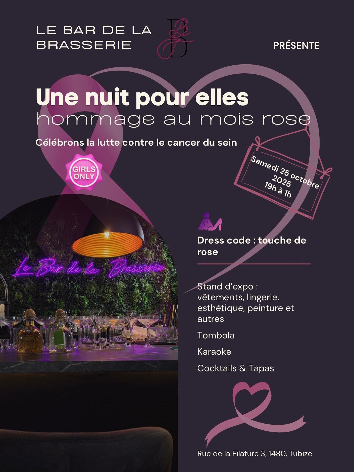 La Brasserie de Tubize vous invite à une soirée spéciale “Octobre Rose”, placée sous le signe de la convivialité et de la solidarité.